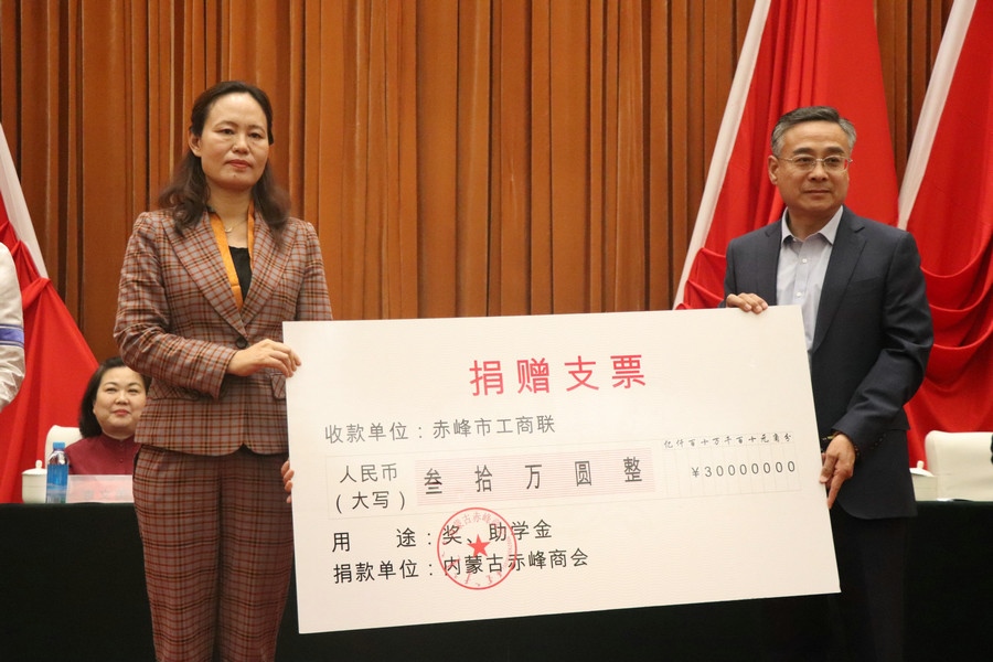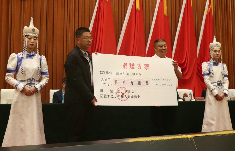 內蒙古赤峰商會還聯合會員單位,利用商會成立之機,向家鄉(xiāng)赤峰市工商聯、巴林左旗三峽中學、赤峰市青少年發(fā)展基金會和赤峰市政府捐贈款物。