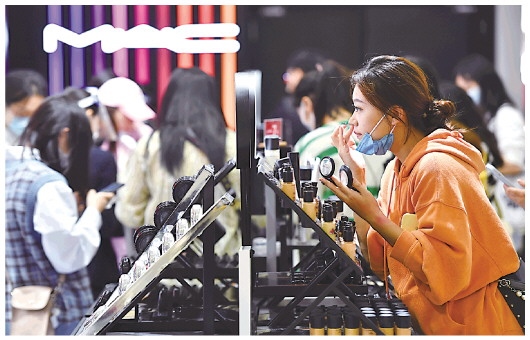 1月3日,顧客在海口日月廣場(chǎng)免稅店選購(gòu)化妝品。新華社記者 郭程 攝