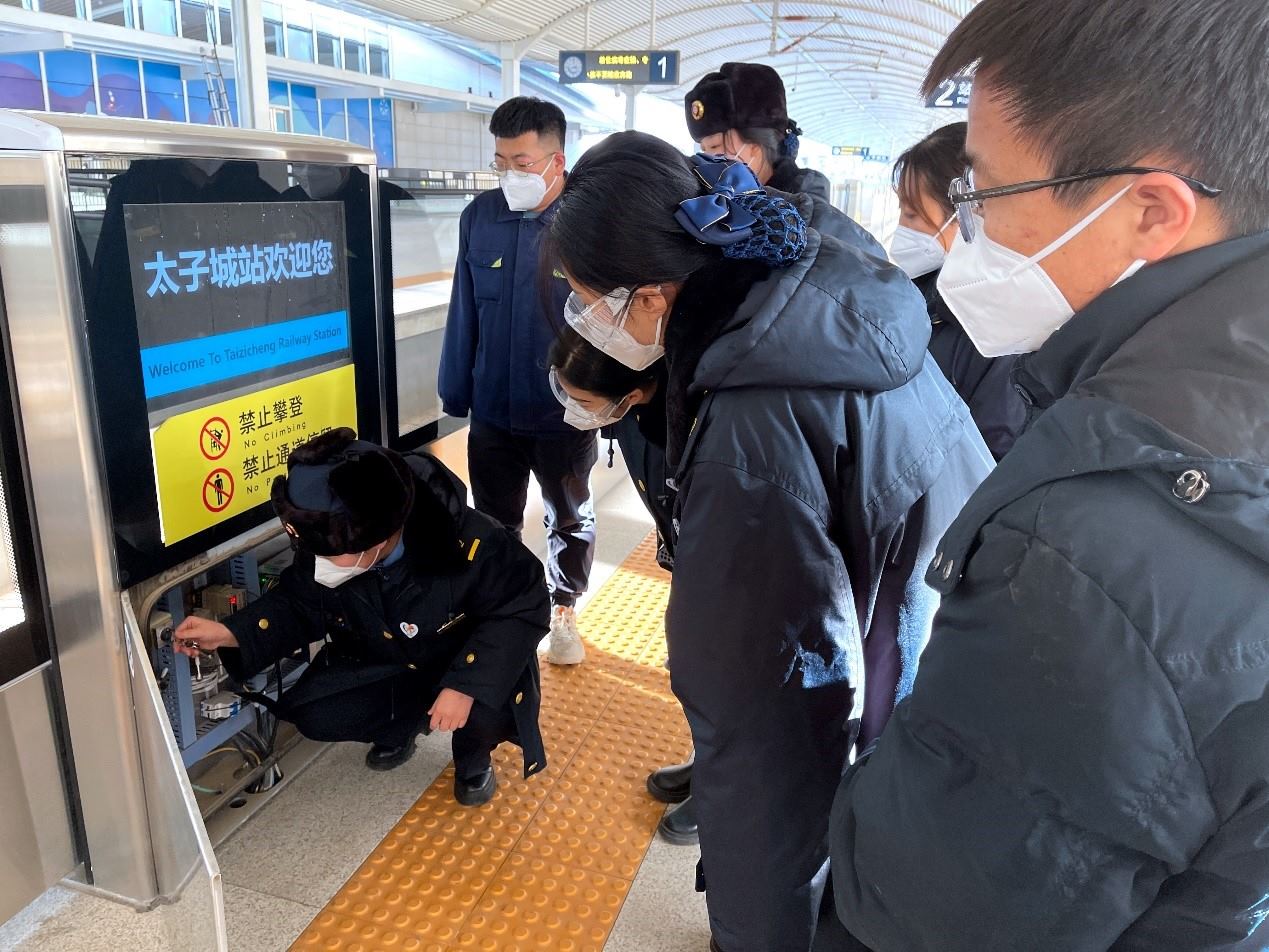 張家口太子城站進行設(shè)施檢查維護。北京局供圖
