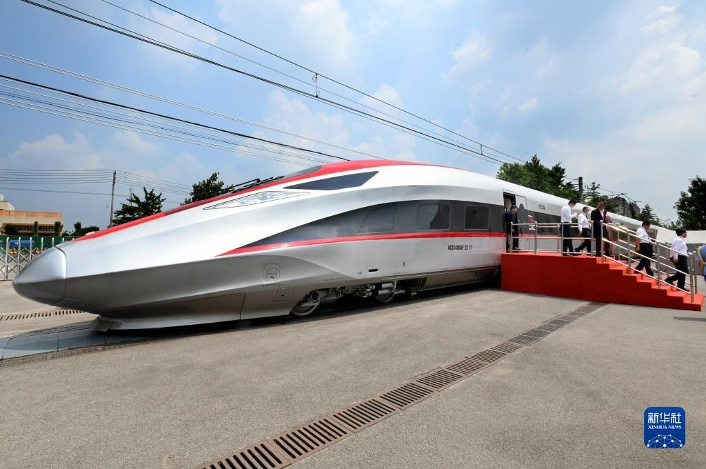 這是在位于山東省青島市的中車(chē)四方股份公司拍攝的雅萬(wàn)高鐵高速動(dòng)車(chē)組(2022年8月5日攝)。新華社記者 李紫恒 攝