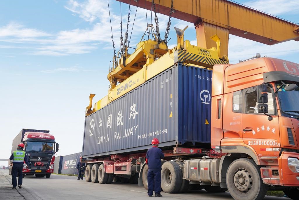圖為南寧國(guó)際鐵路港內(nèi)集裝箱吊裝運(yùn)輸作業(yè)現(xiàn)場(chǎng)。(中國(guó)鐵路南寧局集團(tuán)有限公司供圖)