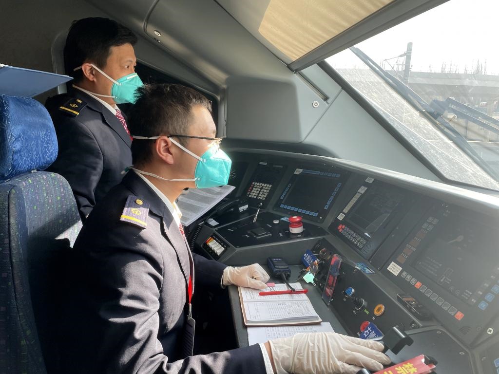 檢測(cè)人員駕駛試驗(yàn)列車進(jìn)行檢測(cè)工作。新華社發(fā) 孫杞民 攝