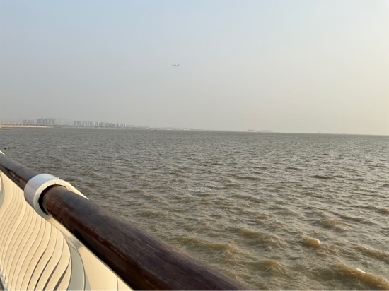 飛機飛過濱海驛站上空。人民網(wǎng)記者 趙雯攝