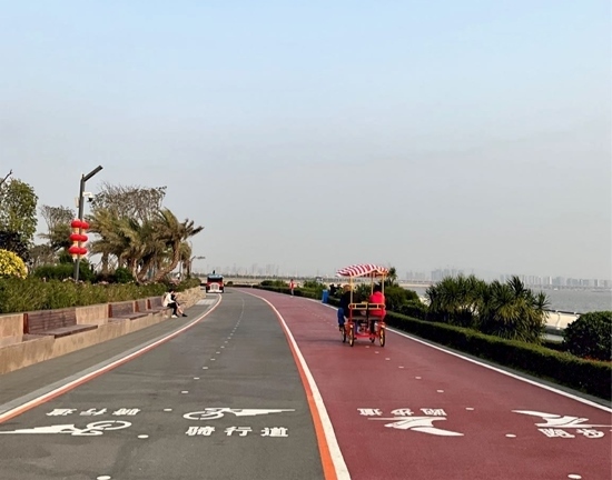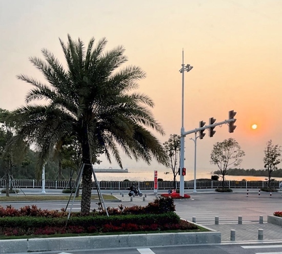 人民網(wǎng)東莞2月22日電 (記者趙雯 薛艷艷)濱海驛站坐落于廣東省東莞市濱海灣新區(qū),是東莞濱海長廊首個建成的重要節(jié)點,緊靠海岸線,南臨前海,隔海眺望南沙自貿(mào)區(qū)、中山翠亨新區(qū)。立于驛臺前,海風習(xí)習(xí)拂來,海天一線,日落降臨,浮光躍金。濱海驛站周邊建有廣場平臺、自行車道、沿海步道和園林綠化。濱海灣新區(qū)未來規(guī)劃建設(shè)一條長約40余公里的濱海長廊,以“運動廊+人文鏈+活力岸”為建設(shè)目標,打造生態(tài)海堤,不僅為游客提供親水體驗,同時也為鳥類、兩棲類動物提供生境及遷徙通廊。