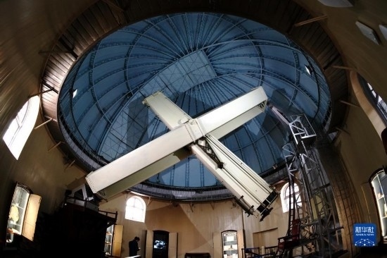 2月24日拍攝的上海佘山天文臺(tái)“鎮(zhèn)臺(tái)之寶”——40厘米雙筒折射望遠(yuǎn)鏡。