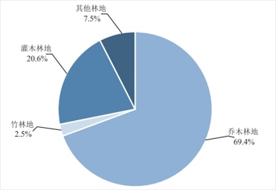 圖為2022年末全國林地結(jié)構(gòu)。來源:《2022年中國自然資源統(tǒng)計(jì)公報(bào)》