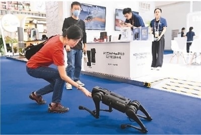 第三屆中國(guó)國(guó)際消費(fèi)品博覽會(huì)科技感十足,參展的各家中國(guó)企業(yè)將“科技感”滿滿的產(chǎn)品展示出來,讓觀眾在消博會(huì)上與前沿的國(guó)產(chǎn)科技零距離接觸,體驗(yàn)國(guó)產(chǎn)“黑科技”。圖為4月13日,觀眾跟科大訊飛展出的機(jī)器狗互動(dòng)。新華社記者 楊冠宇攝