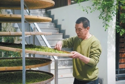 “也是巧了!原本兩周前房間就預訂光了,有個來自上海的團隊預約到茶山采茶,但今天客人臨時調整房間,多出來一間房,你們感興趣也可以去采茶。”畢建林說,“茶園就在后山上,走著就到了。明天上午采茶,下午晾曬,晚上炒制,當晚就能喝到自己親手摘的綠茶了。”杜有鵬和老伴兒聽了很感興趣,當即決定多住一晚。