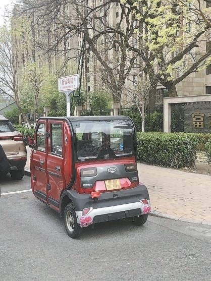 4月11日下午,記者途經(jīng)通州區(qū)萬達廣場周邊路段,正趕上孩子放學的高峰期,路上各式各樣的電動三四輪車不斷從眼前駛過,不少車輛的外形和機動車極其相似,車窗上都貼著“自用”“接送孩子”等字條。透過車窗,不難發(fā)現(xiàn)車輛的駕駛員以老年人為主。記者還發(fā)現(xiàn),這些車輛懸掛號牌的位置,已經(jīng)從過去的廠家廣告牌或是吉祥數(shù)字,變成了如今的摩托車“京B”號牌。