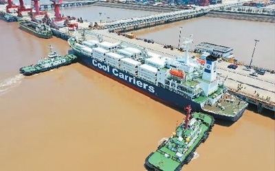 去年以來,浙江省玉環(huán)市持續(xù)加強對港口企業(yè)的引導(dǎo)力度,拓展大麥嶼港與東南亞國家、RCEP國家的合作。圖為一艘滿載6245噸新季獼猴桃的新西蘭貨輪停泊在大麥嶼港集裝箱碼頭,該航線是大麥嶼港于去年成功開通的RCEP國家水果進口航線,實現(xiàn)了入境水果業(yè)務(wù)零的突破。段俊利攝(人民視覺)