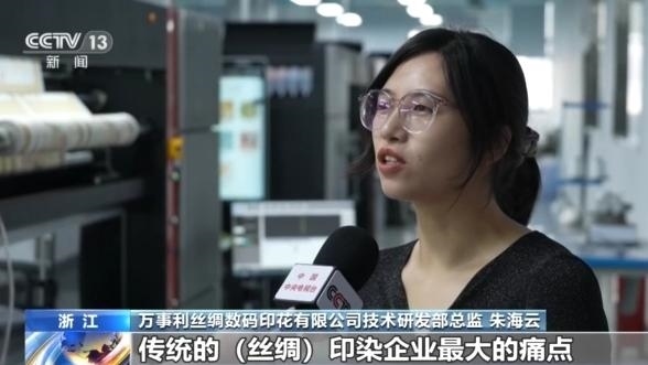 萬事利絲綢數(shù)碼印花有限公司技術研發(fā)部總監(jiān) 朱海云:傳統(tǒng)的絲綢印染企業(yè)最大的痛點就是庫存壓力,現(xiàn)在我們通過人工智能AI的設計,再加上我們的一體機快返的工藝特點,它能夠達到一個先銷后產(chǎn)的經(jīng)營模式,能夠解決我們庫存壓力的痛點。