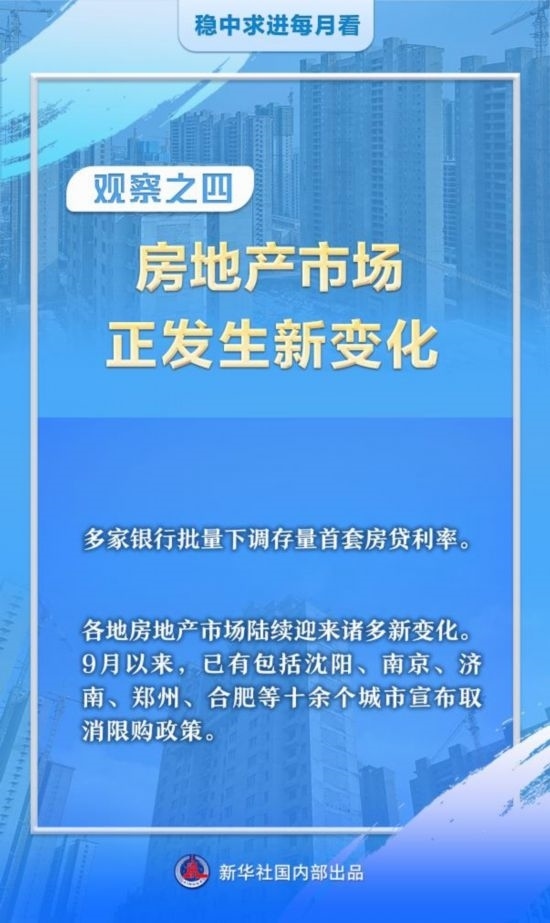 除了批量下調存量首套房貸利率,各地房地產市場陸續(xù)迎來諸多新變化。9月以來,已有包括沈陽、南京、濟南、鄭州、合肥等十余個城市宣布取消限購政策。具體看,沈陽從取消限購限售、優(yōu)化住房信貸等8個方面出臺26條政策措施;南京在全面取消限購的同時,為縮短二手房出售和新房購買周期,推出“換新購”服務……