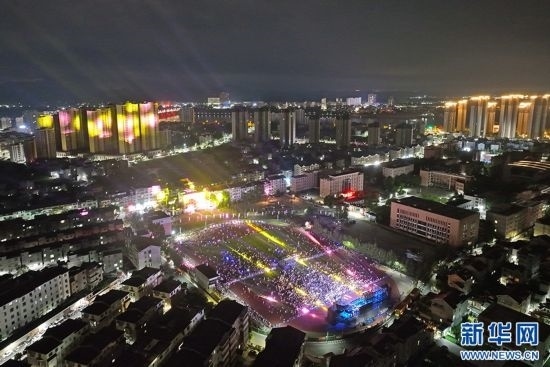 航拍下的萬安鄉(xiāng)村音樂會現(xiàn)場。新華網(wǎng)發(fā) 邱哲 攝