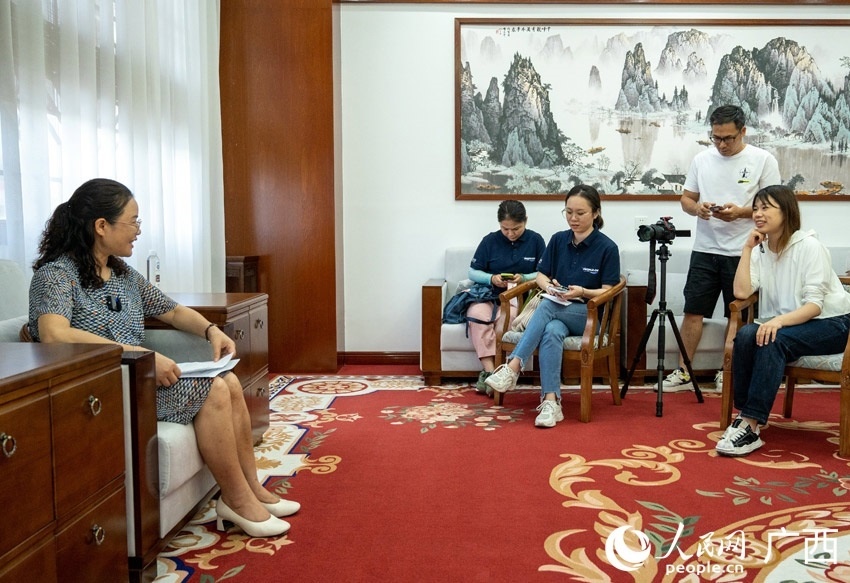 采訪團(tuán)在廣西民族大學(xué)采訪教師代表。人民網(wǎng) 嚴(yán)立政攝