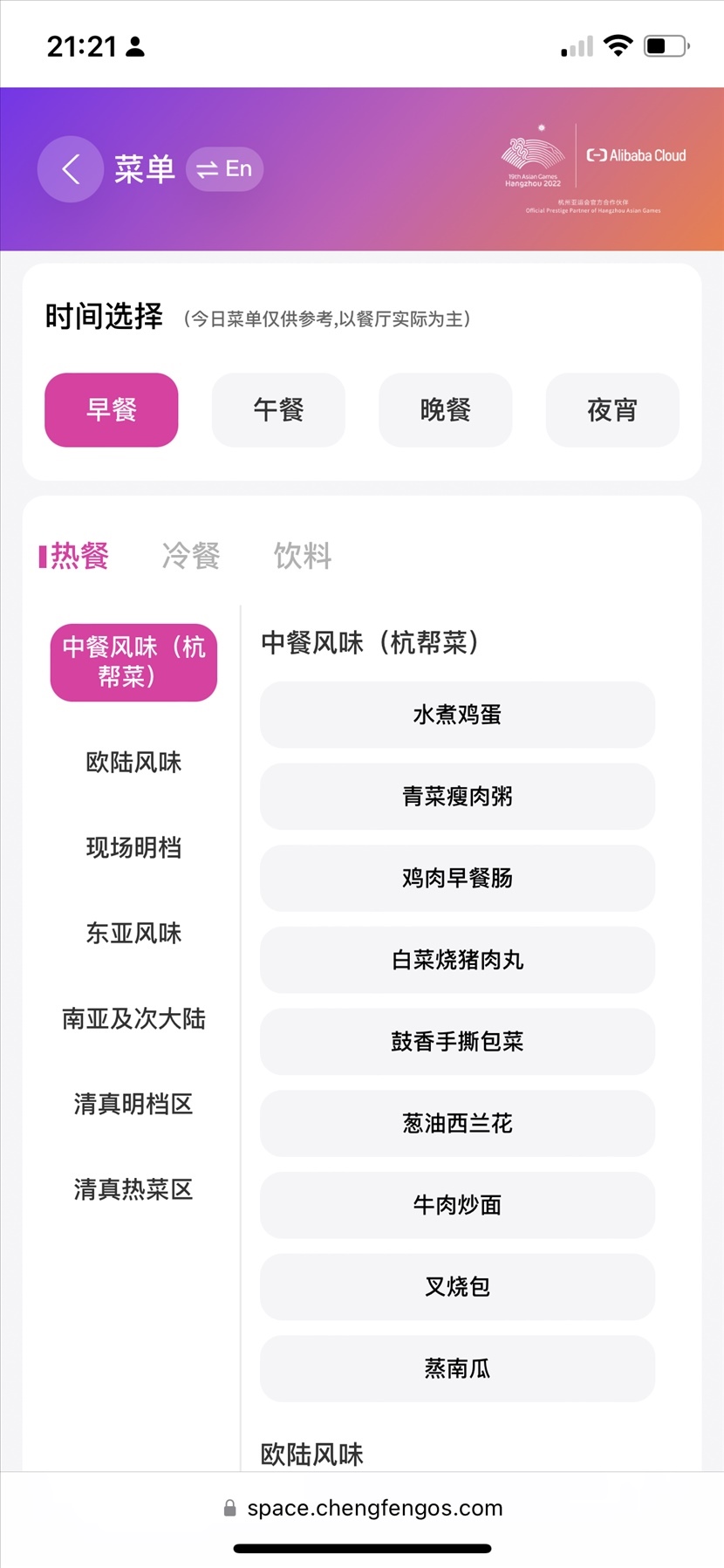 老鴨蘿卜湯、宋嫂魚羹、雪菜蒸鱸魚、東坡肉、京蔥爆牛肉……打開云上亞運村的 “云上通”小程序,各色餐食便可隨意選擇預(yù)約。不僅傳統(tǒng)中餐,“歐陸風(fēng)味”“東亞風(fēng)味”“東南亞及次大陸”各式特色餐食,也可根據(jù)個人喜好和時間安排進(jìn)行性選擇。同時,還可以隨時查看餐廳的實時人流量。