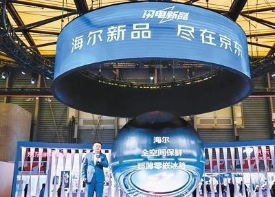 2024年中國家電及消費(fèi)電子博覽會(huì)現(xiàn)場,京東攜手海爾等品牌首發(fā)數(shù)十款家電新品。受訪者供圖