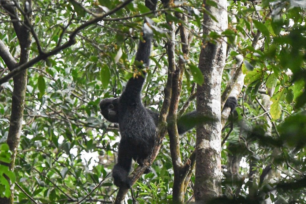 2020年11月12日在海南霸王嶺熱帶雨林中拍攝的海南長臂猿。新華社記者 蒲曉旭 攝