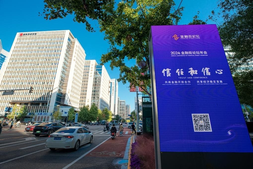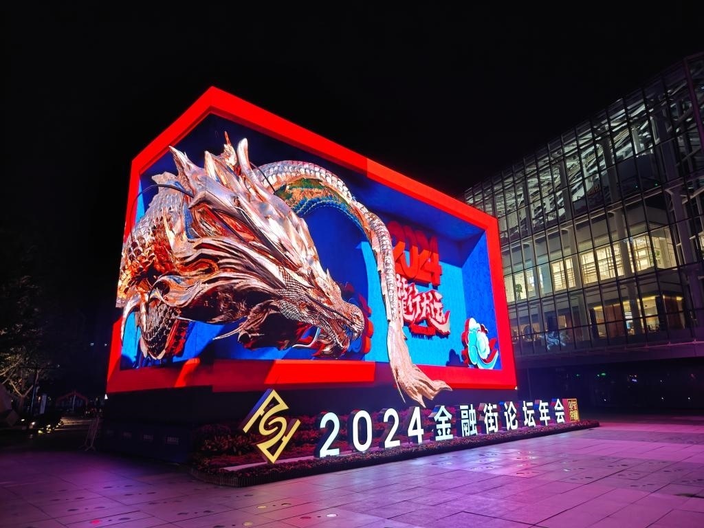 2024金融街論壇年會的會場外設(shè)置展示大屏。新華社發(fā)