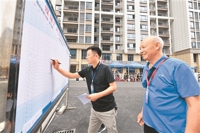 近年來,湖北省襄陽市??悼h持續(xù)改善城市人居環(huán)境、提升城市功能與品位,讓群眾住有所居、安居宜居的夢想不斷成為美好現(xiàn)實。圖為??悼h新型城鎮(zhèn)化項目國投·梅嶺新居小區(qū)開展分房選房工作時,工作人員在填寫房源分配信息。楊 韜攝(人民視覺)