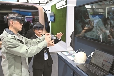 在2024年世界互聯(lián)網(wǎng)大會“互聯(lián)網(wǎng)之光”博覽會上,參觀者體驗一款全息智能醫(yī)學影像系統(tǒng)做手術的過程。新華社記者 蔡湘鑫攝