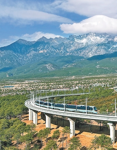 雪山、繁花與牧場(chǎng),構(gòu)成了一幅美麗畫(huà)卷,令人陶醉其中?!帮L(fēng)景太美了!”游客賴(lài)先生是第二次來(lái)云南麗江,這次旅行他體驗(yàn)了麗江雪山觀光火車(chē)。自2月12日開(kāi)通以來(lái),麗江雪山觀光火車(chē)迅速成為旅游界的新“爆款”。這列由我國(guó)自主研發(fā)的全球首列全景觀光山地旅游列車(chē),以其獨(dú)特的設(shè)計(jì)和舒適的體驗(yàn),為游客帶來(lái)一場(chǎng)別具一格的雪山之旅,更成為連接麗江古城與玉龍雪山的“黃金紐帶”。