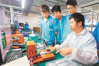 江西省吉安市峽江縣采取“校企合作”等方式發(fā)展職業(yè)教育,有針對性地培養(yǎng)企業(yè)需要的專業(yè)技術(shù)人才,拓寬學生就業(yè)渠道。圖為近日,峽江縣職業(yè)中專的學生在學習鋰電池檢測技術(shù)。