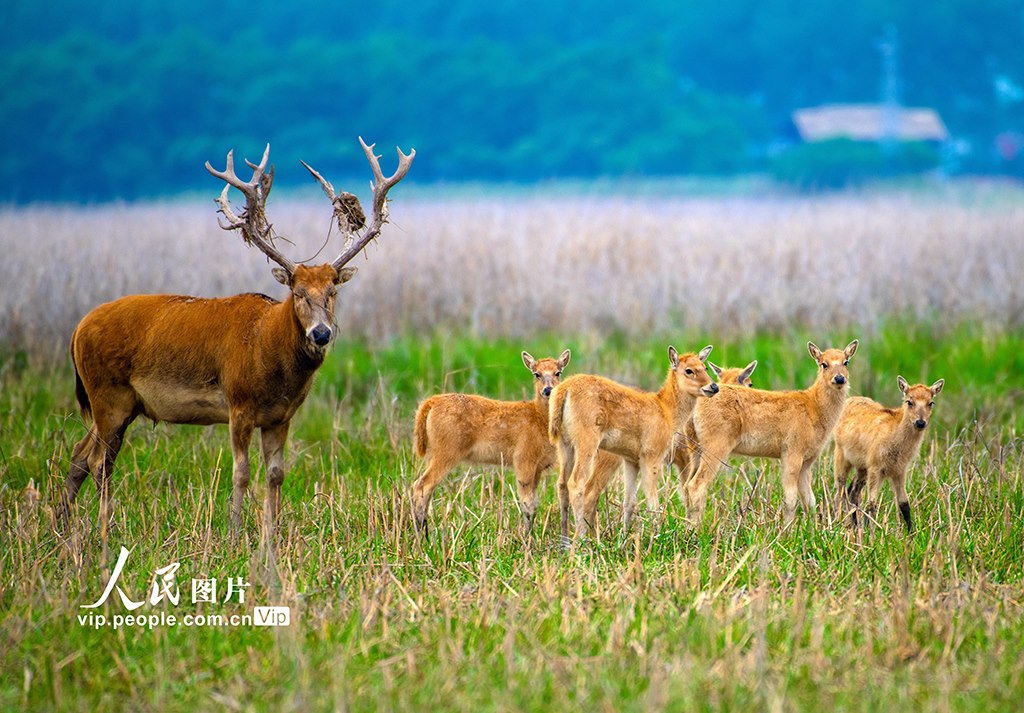 近年來,條子泥濕地生態(tài)環(huán)境越來越好,國家一級保護動物野生麋鹿超過400頭,今年自然產(chǎn)仔達50頭以上,種群數(shù)量得到有效恢復。孫家錄攝(人民圖片網(wǎng))