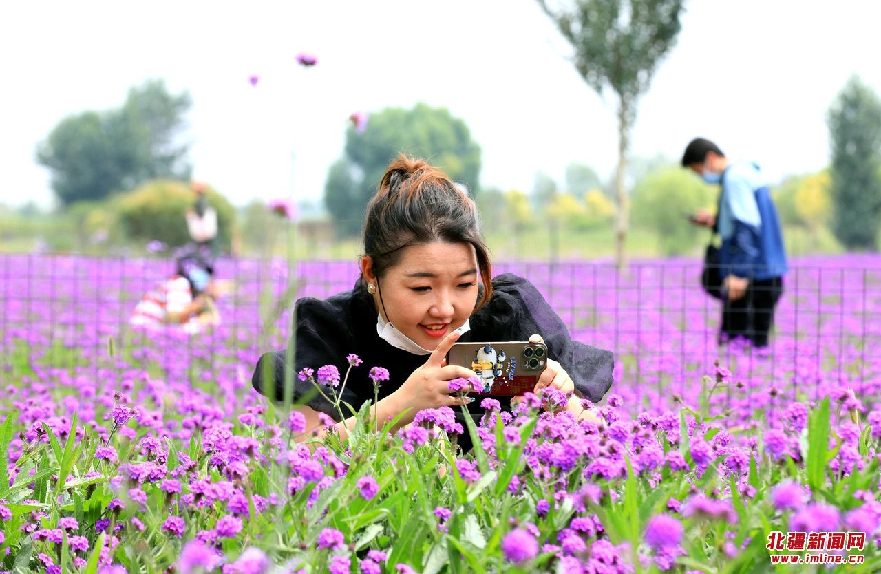 8月4日,市民在呼和浩特馬鞭草花?!按蚩ā?。