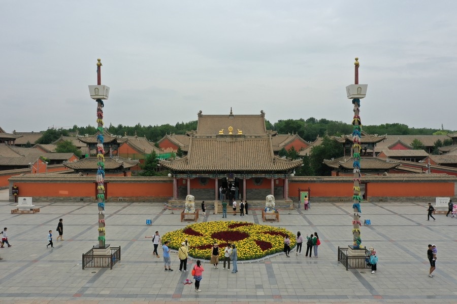 在敖包山下,是著名的貝子廟。歷史上,錫林浩特曾以“貝子廟”為地名稱謂,這座始建于1743年(清乾隆八年)的寺廟,是一座凝聚著蒙、漢、藏多民族文化藝術(shù)的古建筑瑰寶。解放戰(zhàn)爭(zhēng)時(shí)期,貝子廟還是內(nèi)蒙古重要的革命根據(jù)地。