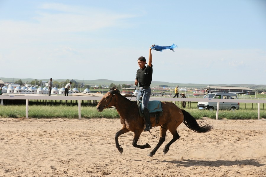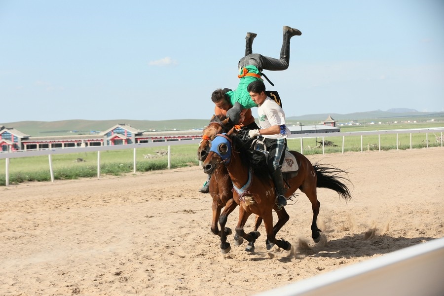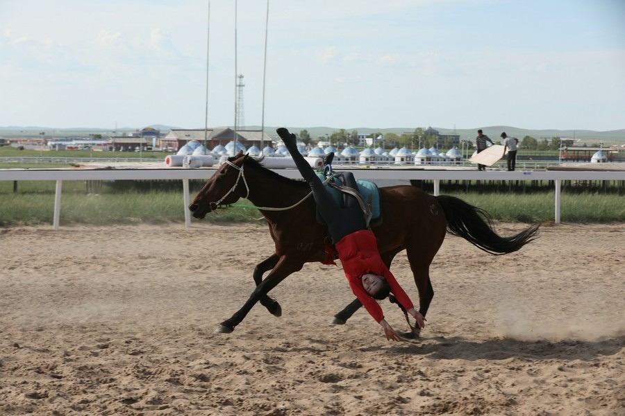 7月25日,貢寶拉格草原的御馬苑旅游區(qū),正在舉行馬術(shù)表演。