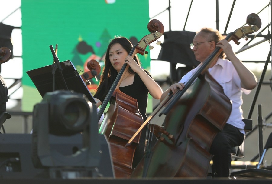 青山攬翠,林海歡歌。8月19日,內(nèi)蒙古烏蘭察布“森林之韻”蘇木山音樂季在蘇木山腳下的店子鎮(zhèn)盧家營(yíng)村繼續(xù)上演。空中視角下的音樂季演出現(xiàn)場(chǎng),燈光璀璨,人頭攢動(dòng)。樹樂隊(duì)、翅膀VS呼哈、劉文天、巫啟賢、陳雅森等演藝人員和北京藝鯤交響樂團(tuán),為游客帶來一場(chǎng)場(chǎng)視聽盛宴。