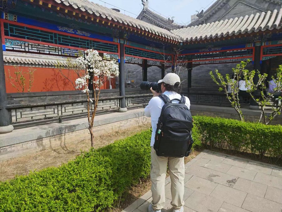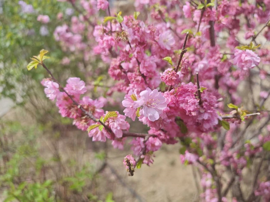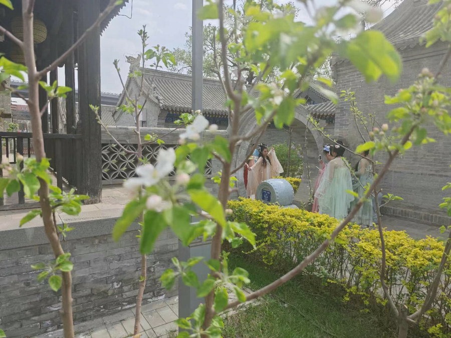 4月18日,內(nèi)蒙古呼和浩特將軍衙署博物院內(nèi)的杏花、桃花、丁香花等百花齊放,芬芳馥郁,吸引眾多游客前來觀賞拍照。