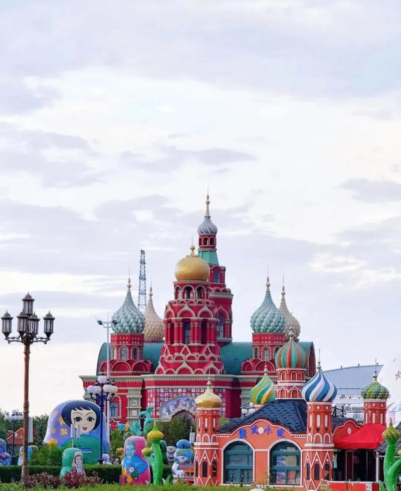 套娃廣場(chǎng):彩色套娃雕塑與俄式洋蔥頂建筑相映,推薦用廣角鏡頭低角度拍攝,將藍(lán)天、雕塑與人物剪影納入畫面,突出異域感。