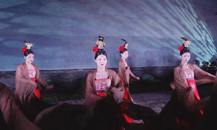 傍晚6時,活動在實景舞蹈《古城賞月》中拉開帷幕。演員們身著飄逸漢服,伴隨悠揚古樂翩躚起舞,再現(xiàn)古代市井賞月之景,瞬間將觀眾帶入詩意盎然的歷史長河。隨后,晉劇《繁華》以高亢激越的唱腔、細膩傳神的表演,展現(xiàn)了晉地戲曲的獨特韻味,贏得陣陣掌聲。