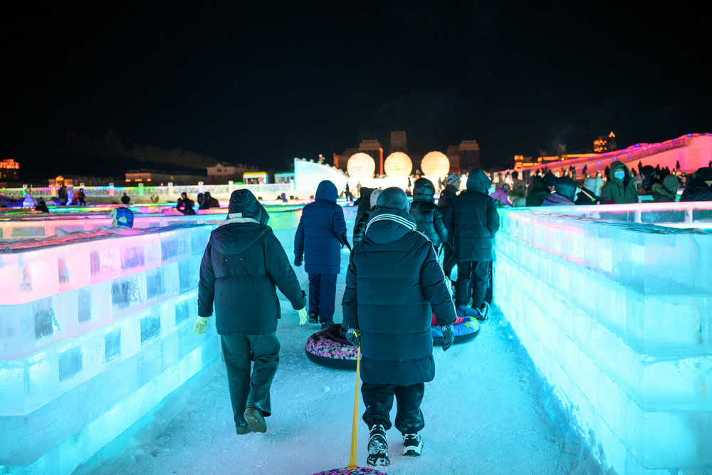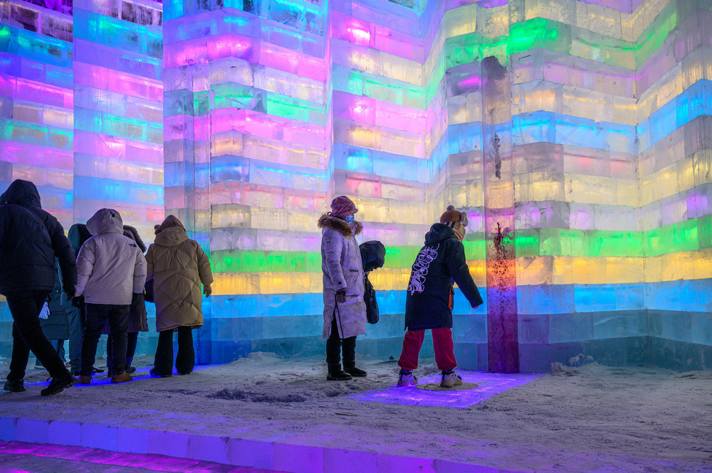 游客在《冰雪芳華》主題樂園內(nèi)游玩