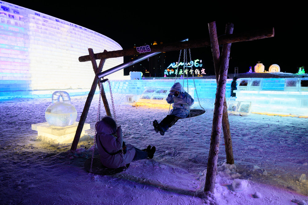 游客在《冰雪芳華》主題樂園內(nèi)體驗(yàn)