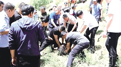 6月6日,甘旗卡鎮(zhèn)森林公安派出所再次接到群眾報(bào)警,稱樹林里又發(fā)現(xiàn)了狗熊,民警到達(dá)現(xiàn)場(chǎng)后依舊未發(fā)現(xiàn)其蹤影。6月11日10時(shí)左右,甘旗卡鎮(zhèn)森林公安派出所再次接到報(bào)警,在甘旗卡工業(yè)園區(qū)北側(cè)發(fā)現(xiàn)狗熊。經(jīng)過前兩次的斗智斗勇,民警們對(duì)這頭只聞其聲、不見其身且又狡猾異常的熊充滿了期待。當(dāng)民警驅(qū)車趕到現(xiàn)場(chǎng)時(shí),終于在樹上發(fā)現(xiàn)了它,是一頭幼年黑熊,屬于國家二級(jí)保護(hù)動(dòng)物,它正躲在樹上觀看下面的人群。由于黑熊具有很強(qiáng)的攻擊性,為確保周邊村民安全,民警立即對(duì)現(xiàn)場(chǎng)進(jìn)行管控并向上級(jí)匯報(bào)。11時(shí)左右,經(jīng)上級(jí)相關(guān)部門協(xié)調(diào),通遼市園林管理局西拉木倫公園工作人員攜帶麻醉槍、麻醉劑、圍網(wǎng)等設(shè)備到達(dá)現(xiàn)場(chǎng)并制定抓捕方案。12時(shí)左右,“熊孩子”在一番掙扎之后被帶離現(xiàn)場(chǎng),暫時(shí)交由通遼市西拉木倫公園飼養(yǎng)照料。(記者 張巧珍)