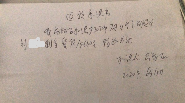 為了不耽誤婚房裝修,劉先生又在居然之家選擇了其他品牌的衛(wèi)浴,并向高經(jīng)理提出退回未付貨的14660元貨款。但高經(jīng)理表示最近手里沒(méi)錢,不過(guò),他答應(yīng)劉先生,在7月31日前會(huì)全部退還,并且當(dāng)場(chǎng)寫(xiě)了一個(gè)退款承諾書(shū)。