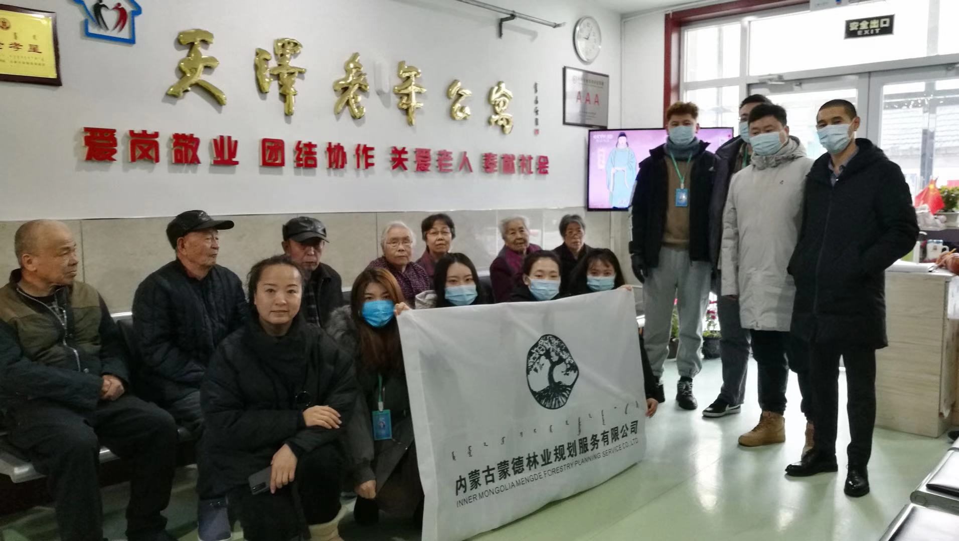2020年12月15日,內(nèi)蒙古蒙德林業(yè)規(guī)劃服務(wù)有限公司8名員工到天澤老年公寓開展社會實踐活動,贈送了口罩、消毒液、食用油和水果等物資,并且了解老人們的生活狀況和生活態(tài)度,關(guān)愛老年群體,慰問敬老院老人,給他們送去一份關(guān)愛和溫暖。讓他們老有所樂,感受到社會對老人的關(guān)懷。希望給老人們的生活增添一份色彩,也更能體現(xiàn)企業(yè)愛心以及社會責(zé)任感,鍛煉和豐富員工業(yè)余文化活動。宣傳和弘揚公益事業(yè),秉承尊敬和愛護老人的思想砥礪前行。本次活動以為民服務(wù)的宗旨,緊緊圍繞公益志愿服務(wù)為奮斗目標(biāo),弘揚尊老敬老的傳統(tǒng)美德,共建和諧社會。