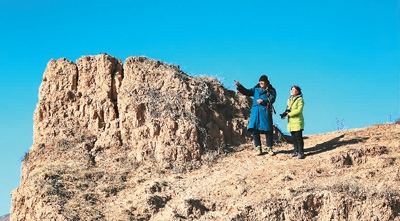 高曉梅(右)在內(nèi)蒙古烏蘭察布市涼城縣考察長(zhǎng)城時(shí)向羊倌問路。