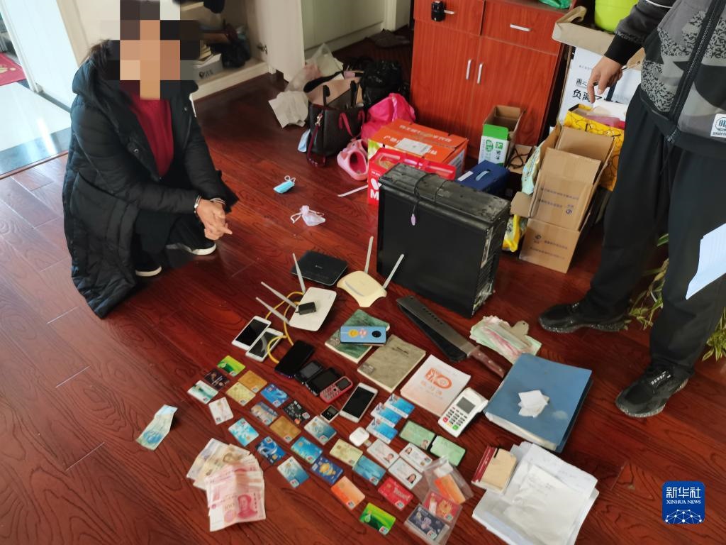 這是民警在一處窩點(diǎn)抓獲的犯罪嫌疑人及在現(xiàn)場(chǎng)查獲的部分犯罪工具。(受訪(fǎng)單位供圖)