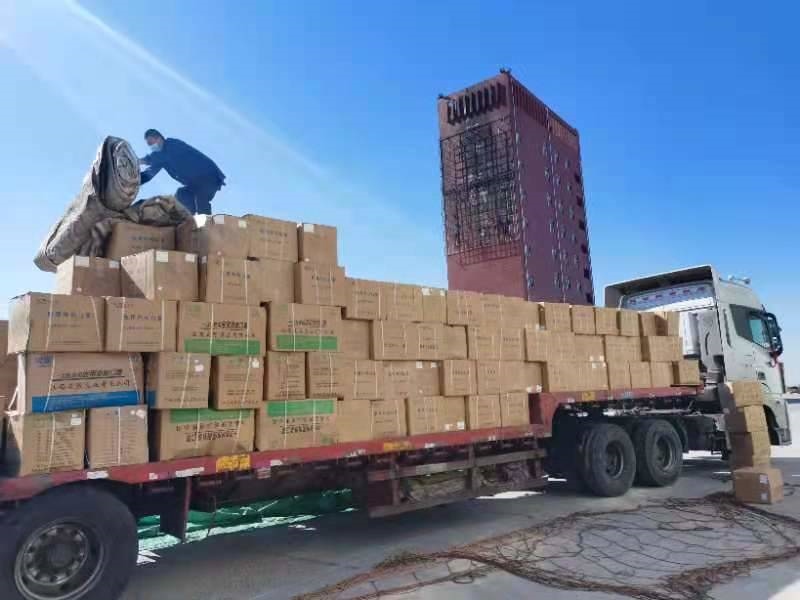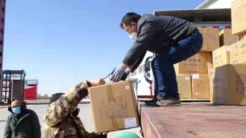 3月1日清晨,錫林郭勒盟至呼和浩特的后山地區(qū)飄著小雪,氣溫在零下10度以下,但是,風(fēng)雪擋不住來(lái)自錫林郭勒大草原的一片片愛(ài)。一輛17米帶掛卡車長(zhǎng)驅(qū)千里十多小時(shí),帶著錫林郭勒大草原的問(wèn)候,連夜運(yùn)輸?shù)胶艉秃铺?,只為早點(diǎn)送達(dá)100萬(wàn)只一次性醫(yī)用外科口罩。這輛卡車上掛著內(nèi)容為“祝青城人民早日戰(zhàn)勝疫情,錫盟公益助力呼和浩特市”和“洶洶疫情不可怕,齊心協(xié)力戰(zhàn)勝它”的條幅,表達(dá)“中國(guó)馬都”向“中國(guó)乳都”的真切問(wèn)候。