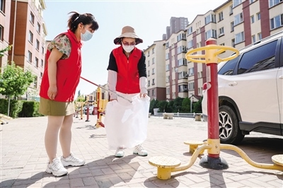 社區(qū)工作人員維護(hù)轄區(qū)衛(wèi)生