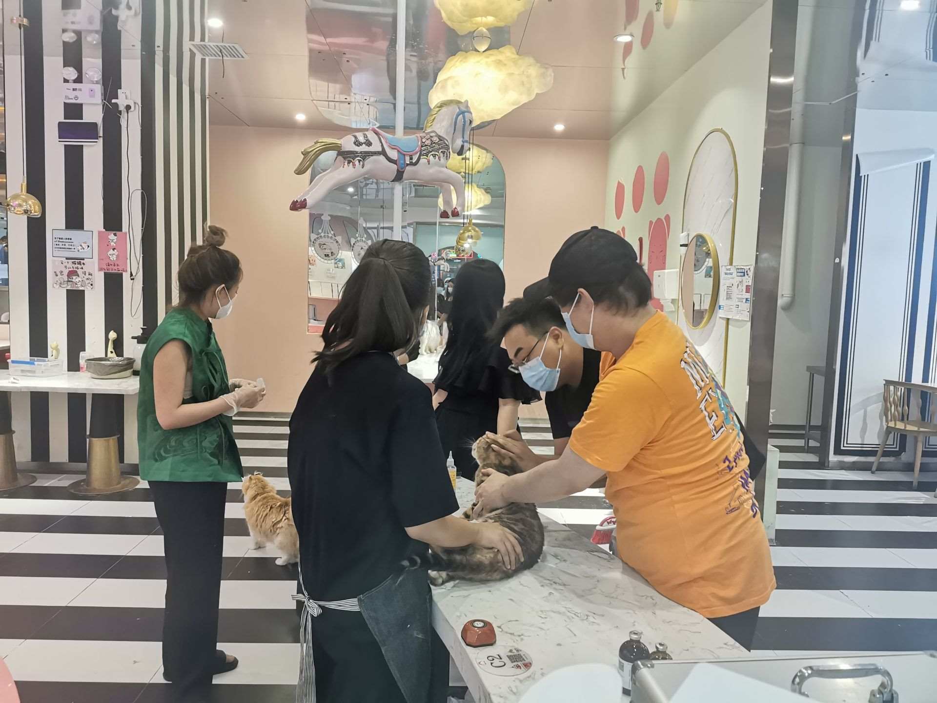 7月4日下午,記者來到店內,只見店內供電已恢復,屋內窗明幾凈,完全無異味,室內環(huán)境大為改觀,志愿者團隊們在店內忙碌打掃,對貓咪們進行體檢、滴藥、梳毛,現場井然有序,貓咪的狀態(tài)明顯活躍很多。