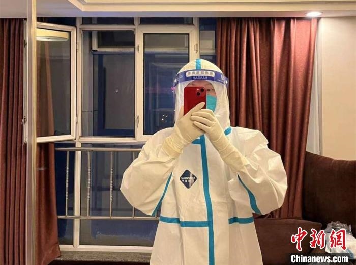 隔離期滿,郭佳煌選擇成為酒店防疫志愿者,工作時間是12點到24點。“中間有4個小時休息,我不覺得辛苦,反而覺得很有意義,希望所有人都能夠團結起來,為抗擊疫情貢獻自己的力量?!惫鸦驼f。