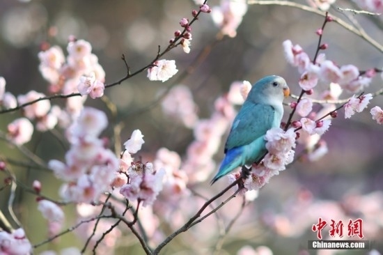 2月20日,江蘇南京,牡丹鸚鵡在梅花山梅花樹(shù)上“賞”梅。牡丹鸚鵡由南京一市民飼養(yǎng),每年在梅花盛開(kāi)的時(shí)候,他都會(huì)帶著鸚鵡來(lái)到這里“賞”梅,同時(shí)也成為一景。 中新社記者 泱波 攝