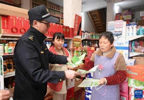 2月22日,在八里店鎮(zhèn)西山社區(qū),黨員志愿者和行政執(zhí)法隊員向沿街商戶發(fā)放垃圾分類、沿街清運的告知單。