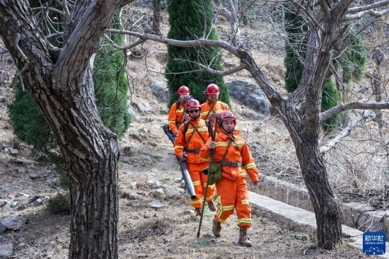 3月15日,長(zhǎng)清區(qū)國(guó)有蓮臺(tái)山林場(chǎng)防火中隊(duì)隊(duì)員準(zhǔn)備進(jìn)入林區(qū)巡護(hù)。