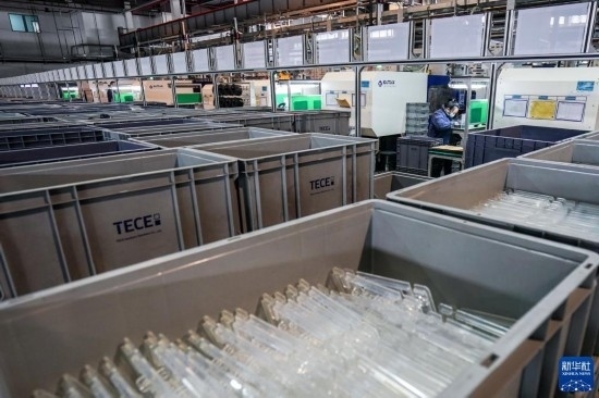 工人在位于太倉市高新區(qū)的威爾斯新材料(太倉)有限公司生產(chǎn)車間內(nèi)進(jìn)行加工作業(yè)(3月16日攝)。