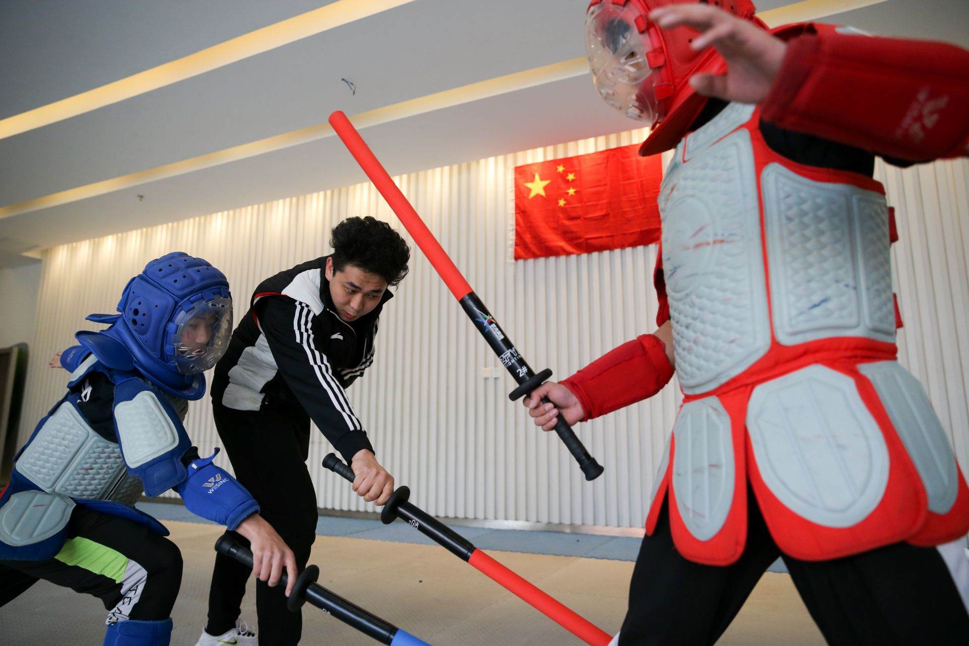 據(jù)了解,2021年,國家體育總局武術(shù)管理中心推出了試行的武術(shù)兵道(短兵)競賽規(guī)則,武術(shù)兵道作為與武術(shù)套路、武術(shù)散打并列的競技武術(shù)重要內(nèi)容在全國普及推廣。同一年,剛剛從北京體育大學(xué)武術(shù)專業(yè)畢業(yè)的張宇來到呼和浩特,參與了內(nèi)蒙古第一批武術(shù)兵道運(yùn)動員的選拔。“因?yàn)槭切马?xiàng)目,大部分隊員都是跨項(xiàng)選拔,主要關(guān)注他們的身體靈活性和臂展?!睆堄钫f。